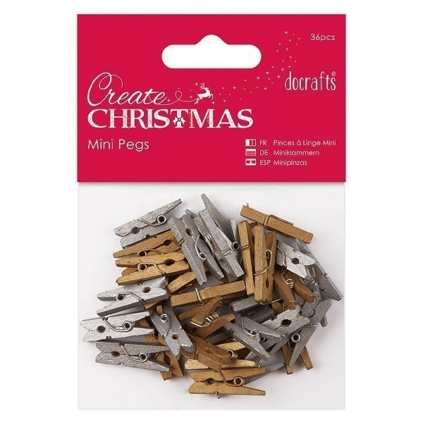 Docrafts Create Christmas brings you a range of Christmas essentials perfect for your Festive crafting. Use this pack of festive mini pegs to embellish a wide variety of your Christmas craft projects. Pack contains 36pcs.